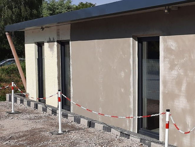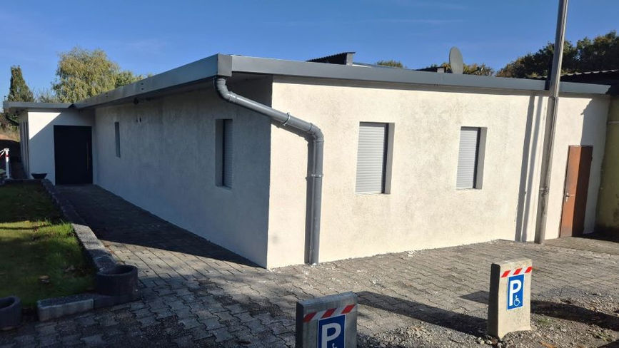 Am 18. & 19. Oktober 2024 haben Bernd und Günter den Feinputz auf die Außenwände aufgebracht. Uwe hat sie dabei tatkräftig mit dem Gabelstapler unterstützt. Danach wird "nur noch" der Außenanstrich aufgebracht. Freiwillige bitte jetzt schon bei Uwe melden 🤠!!!